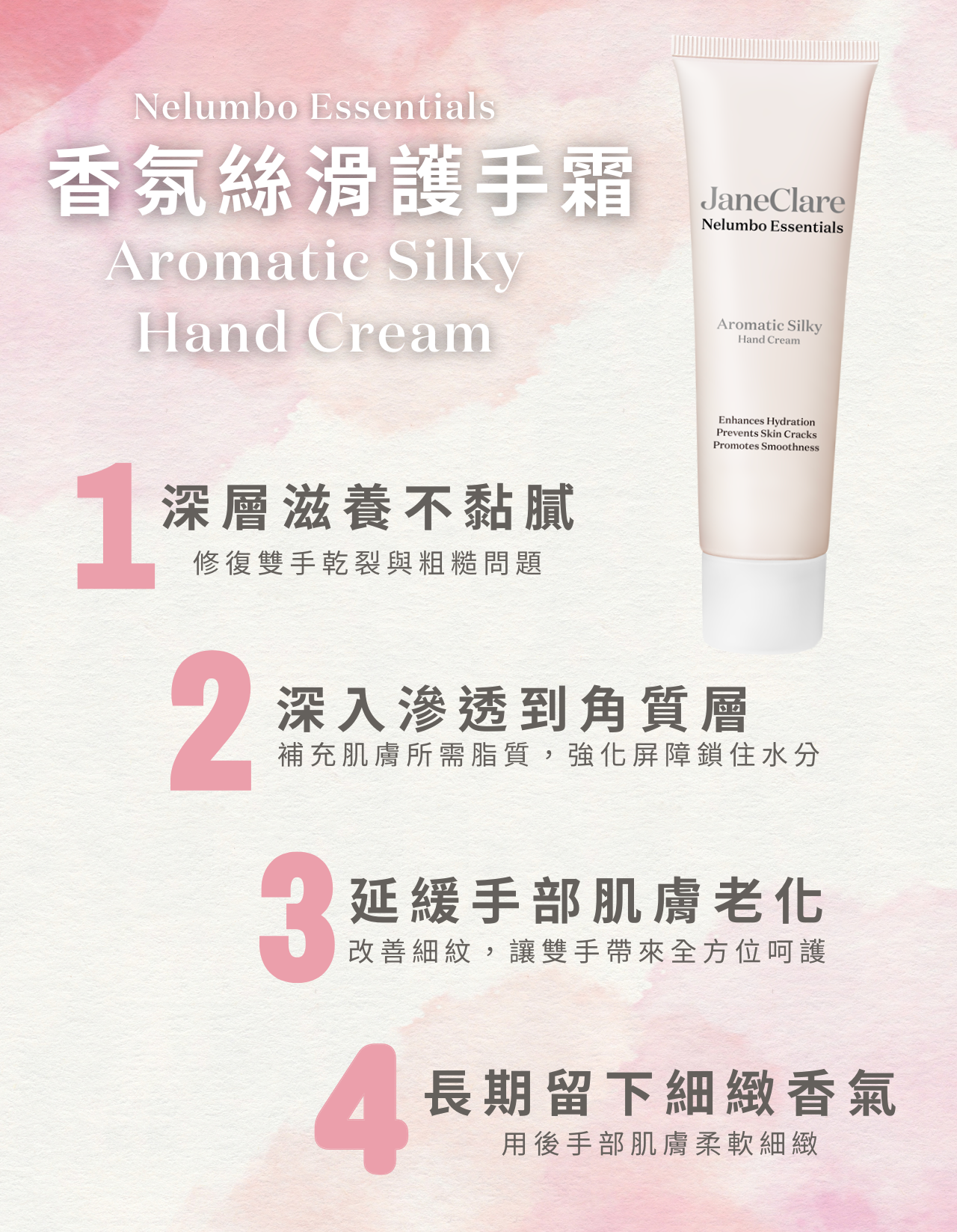·具有獨特的芳香,用後手部肌膚柔軟細緻,並留下細緻香氣。