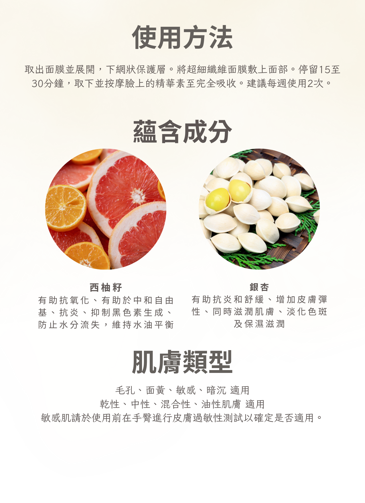 ·銀杏強效抗氧化保護,中和自由基,有效提亮膚色,改善粗糙暗沉肌膚。