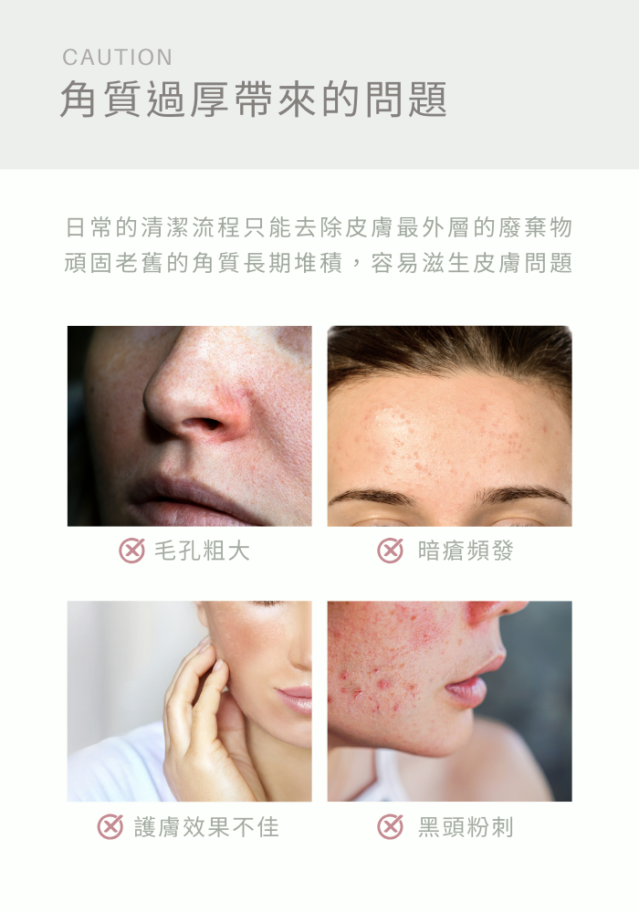 · 去除角質及分解毛孔中的頑固污垢, 幫助護膚吸收