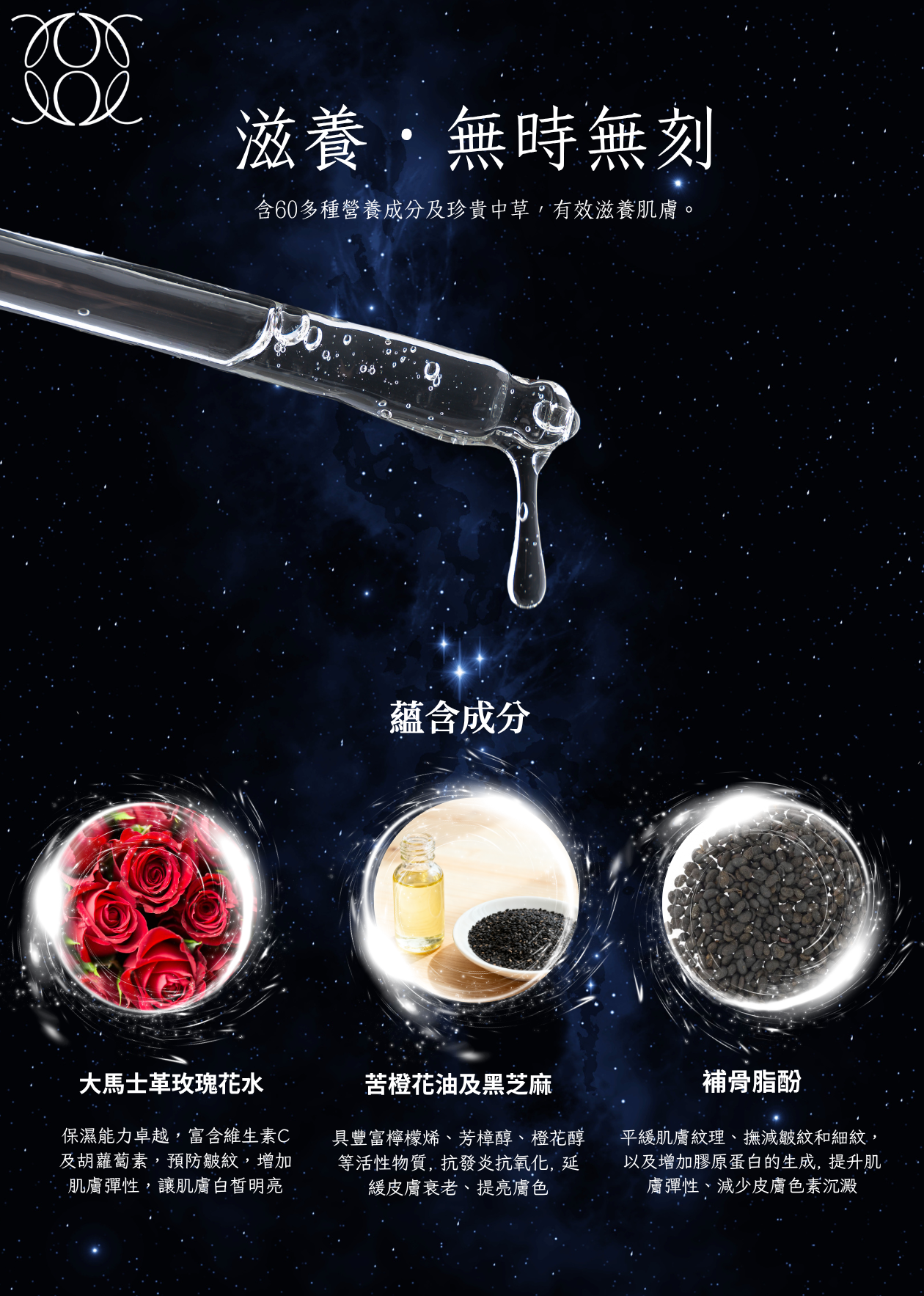 .薔薇精萃與多重緻顏多重肽完美融合,糅合苦橙花及黑芝麻等。