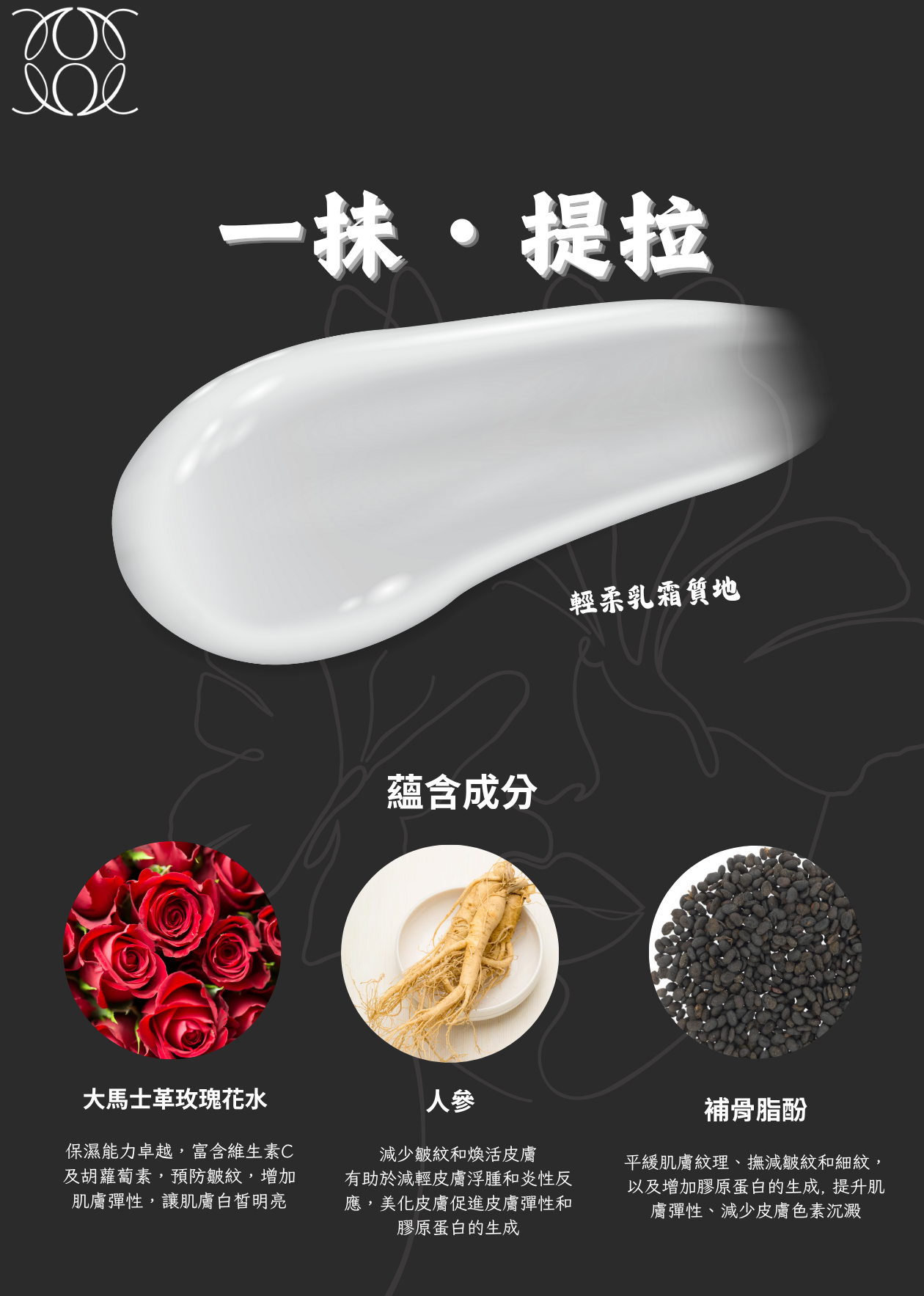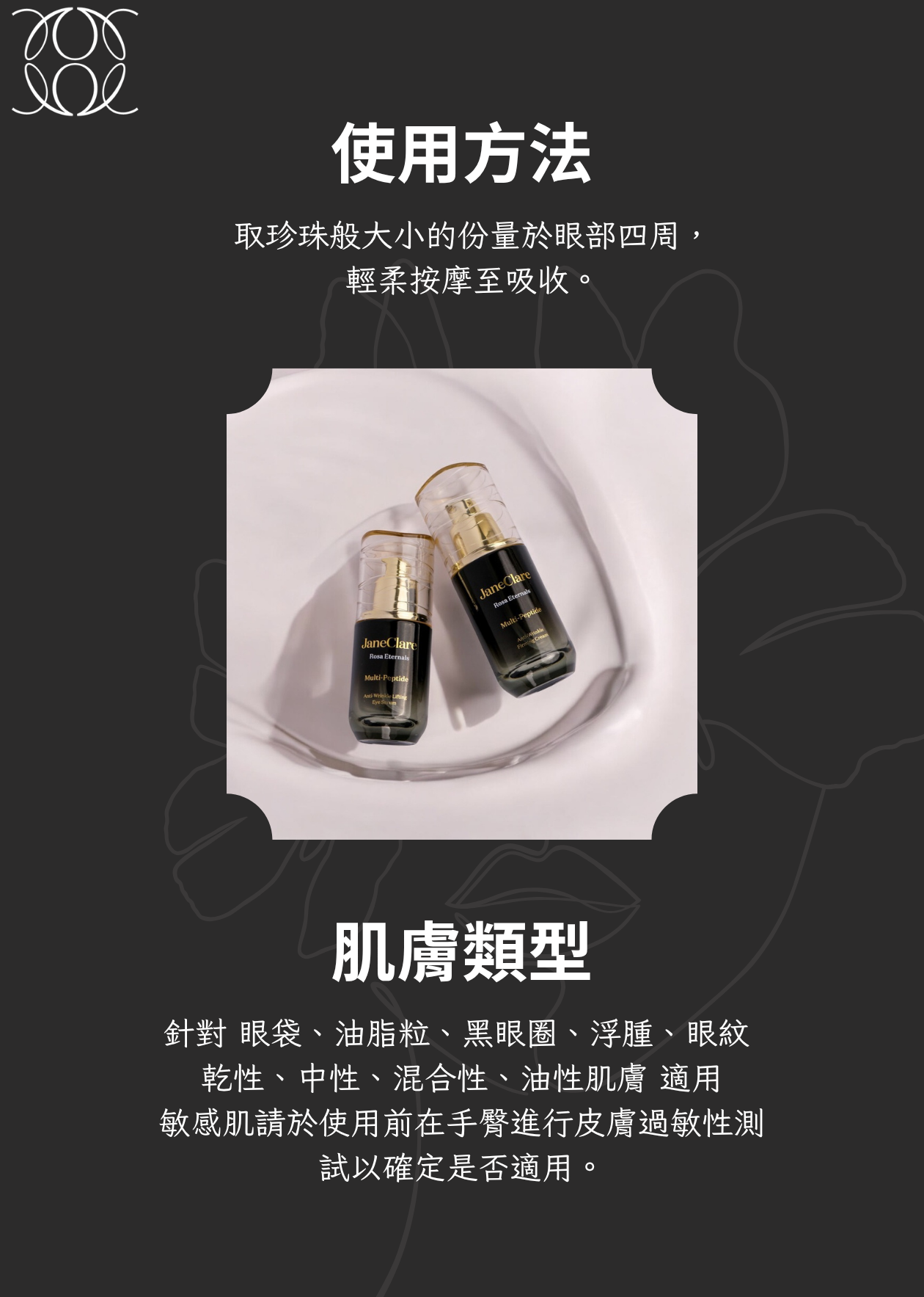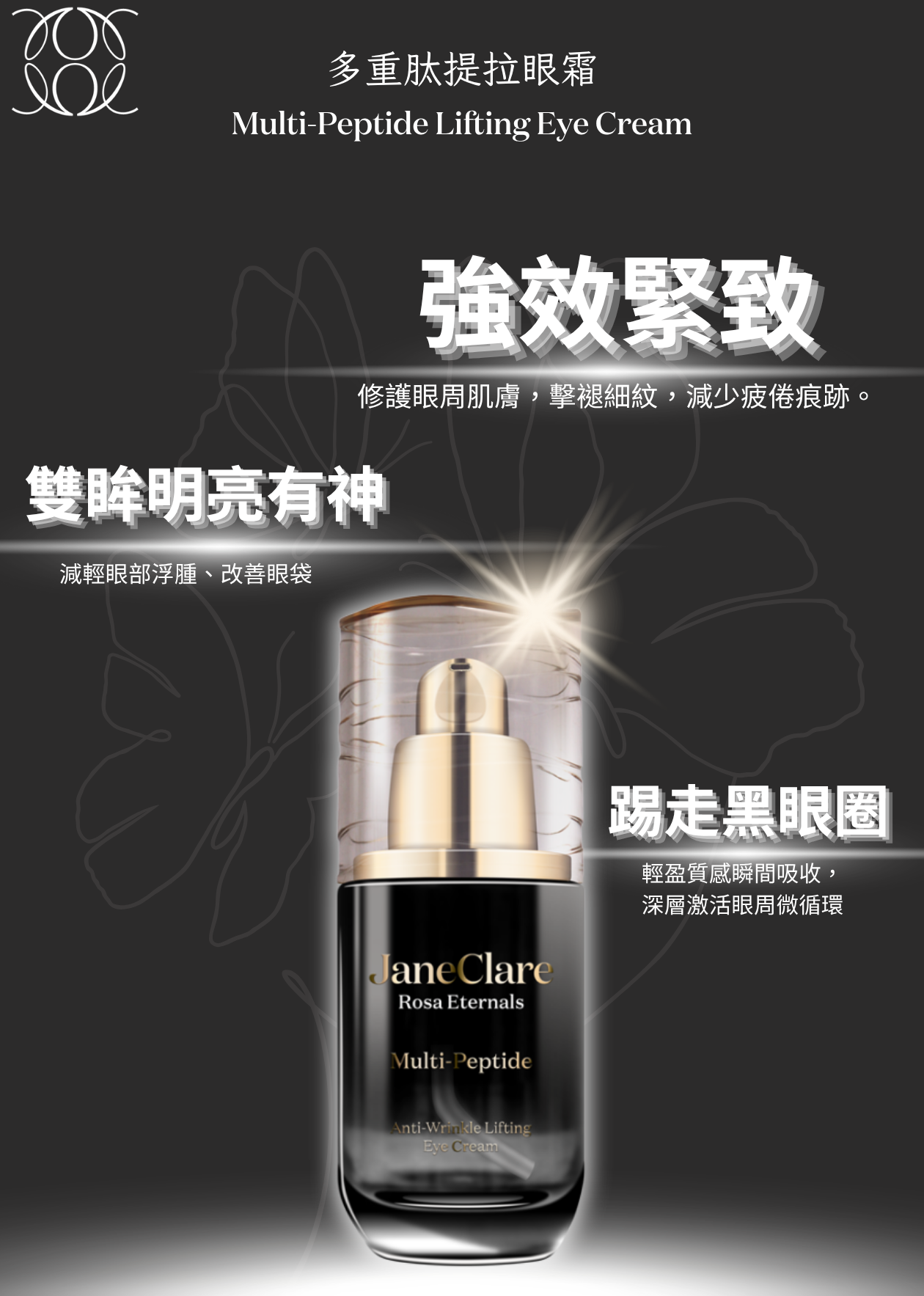 ·專為眼部調配,薔薇精萃結合多種緻顏多重肽 ,糅合田七及當歸等。