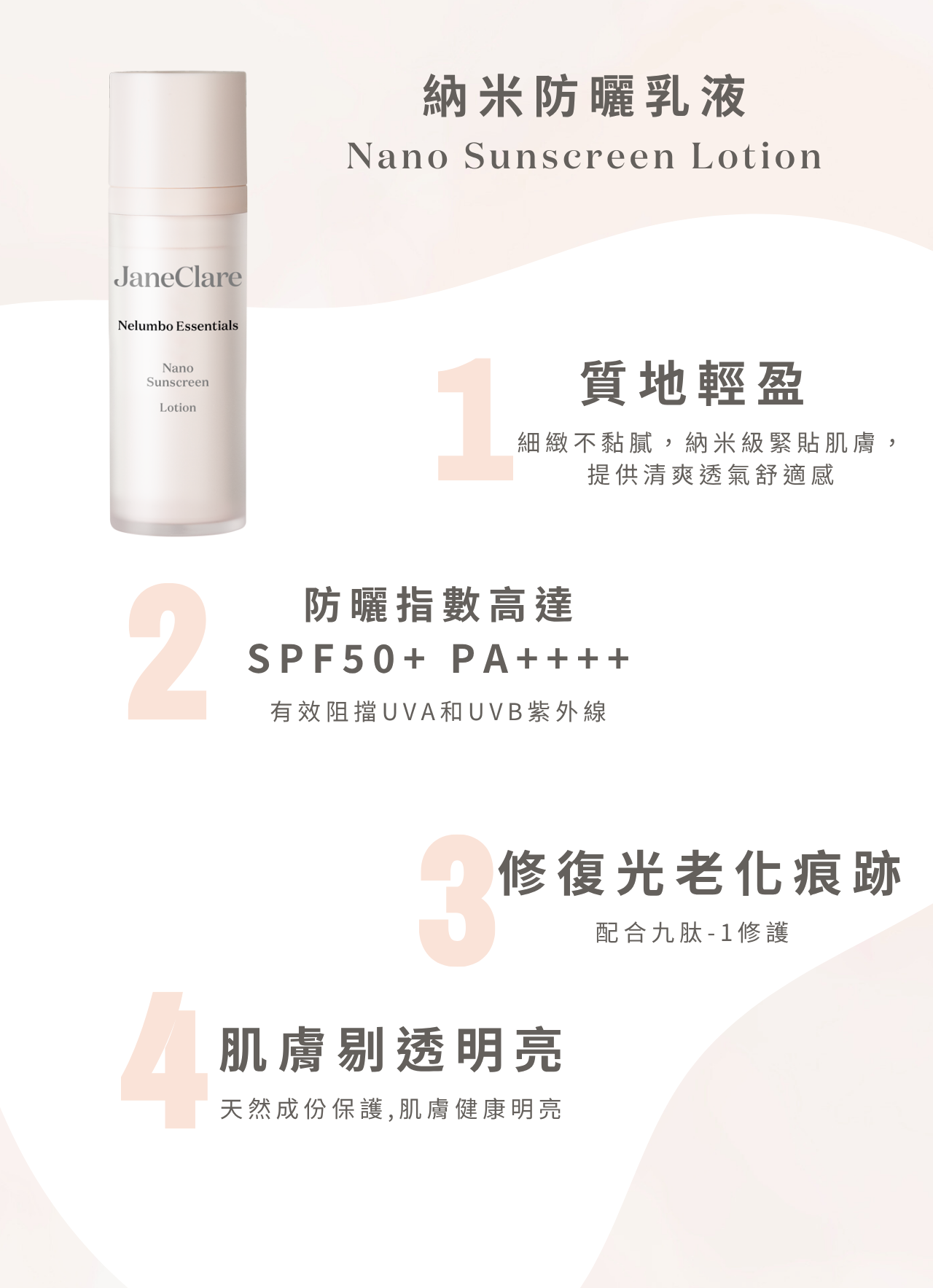 ·質地輕盈細緻不黏膩,納米級緊貼肌膚,提供清爽透氣舒適感。