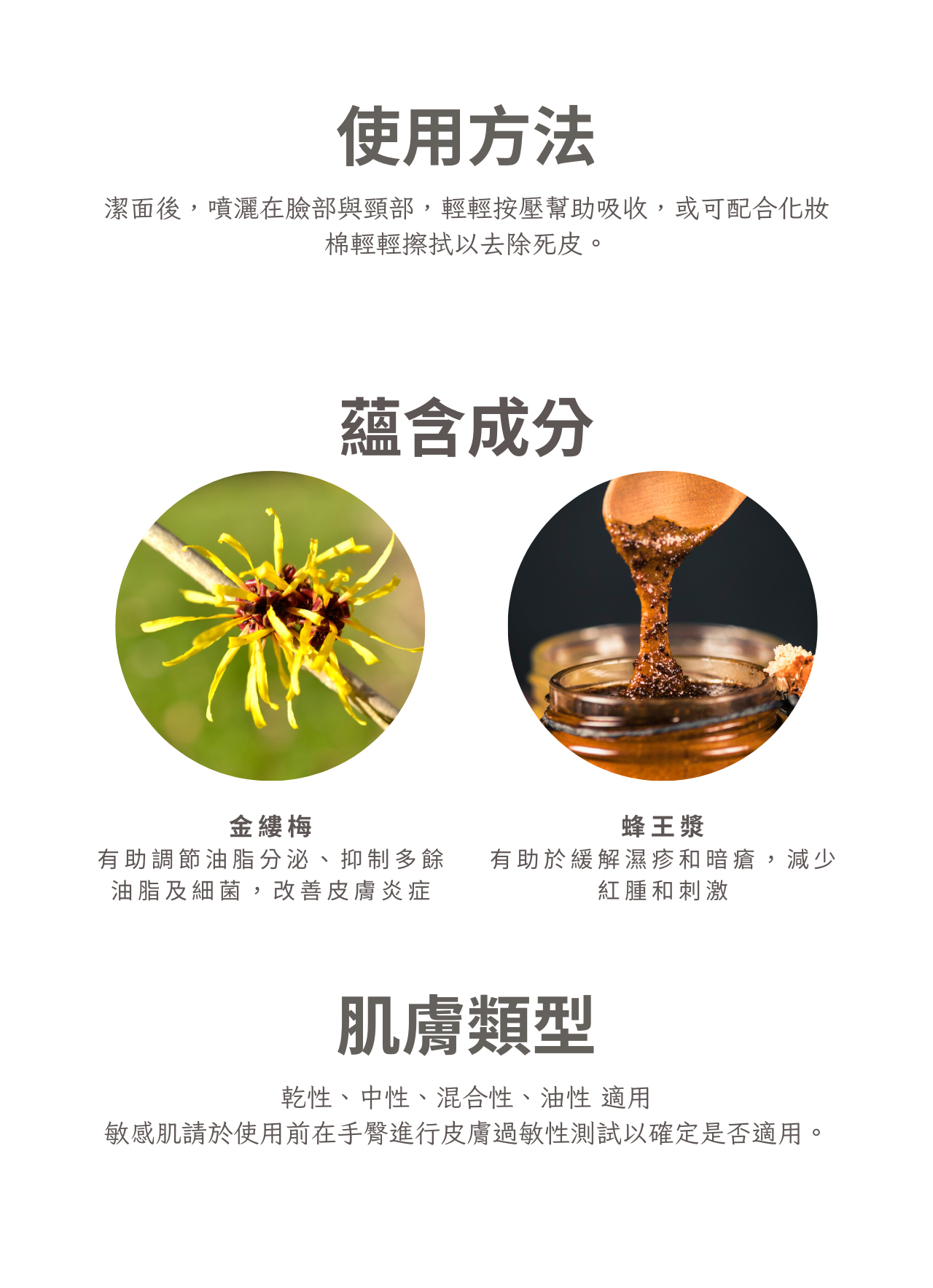 .金縷梅有助調節油脂分泌、抑制多餘油脂及細菌,改善皮膚炎症