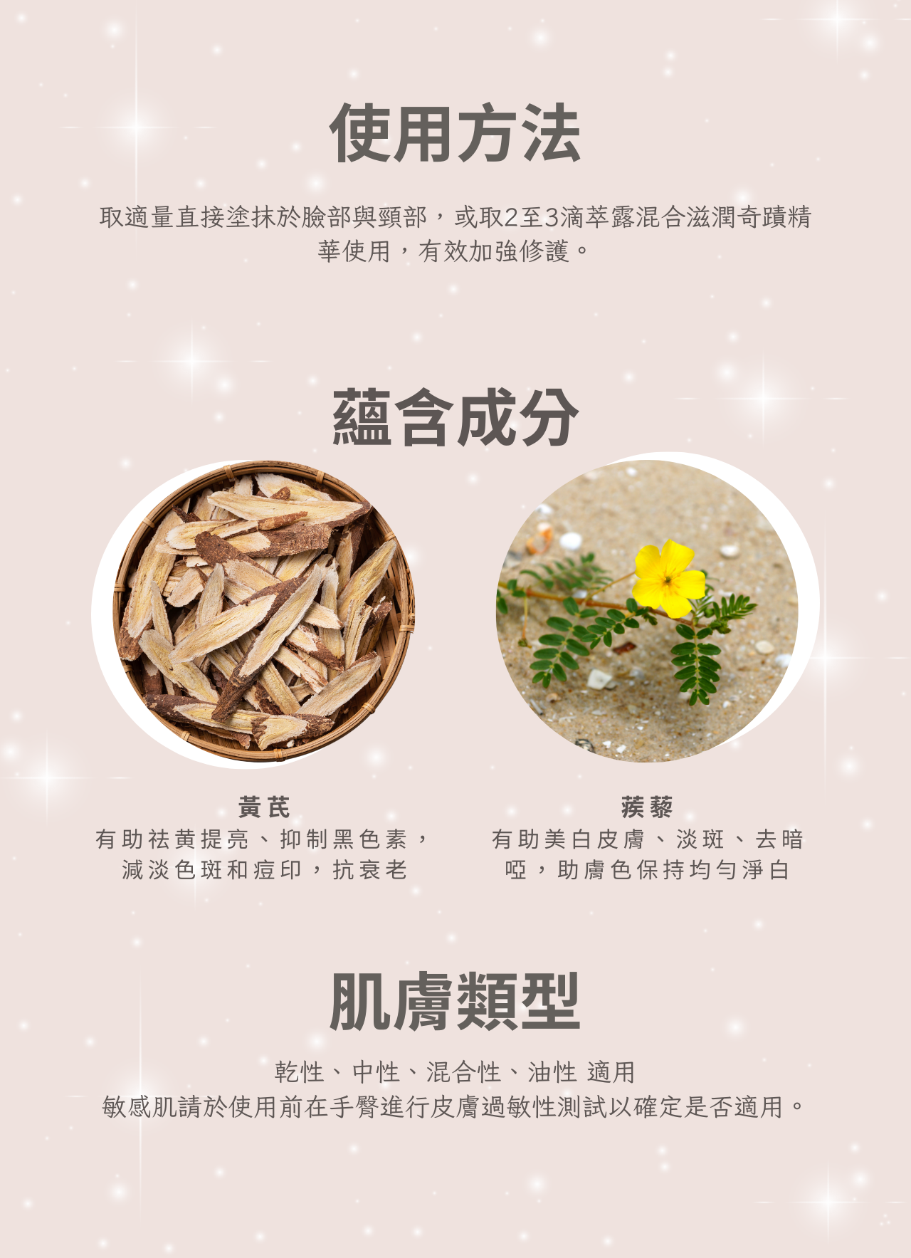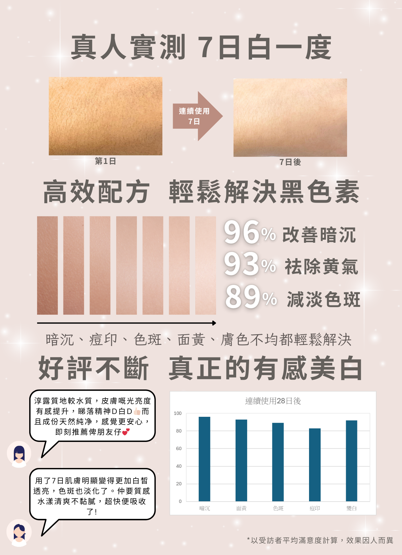 每一滴煥采亮肌萃露都蘊含高濃度斷黃精華,能瞬間為肌膚注入滿滿水光能量,連續使用7天,即可看見: