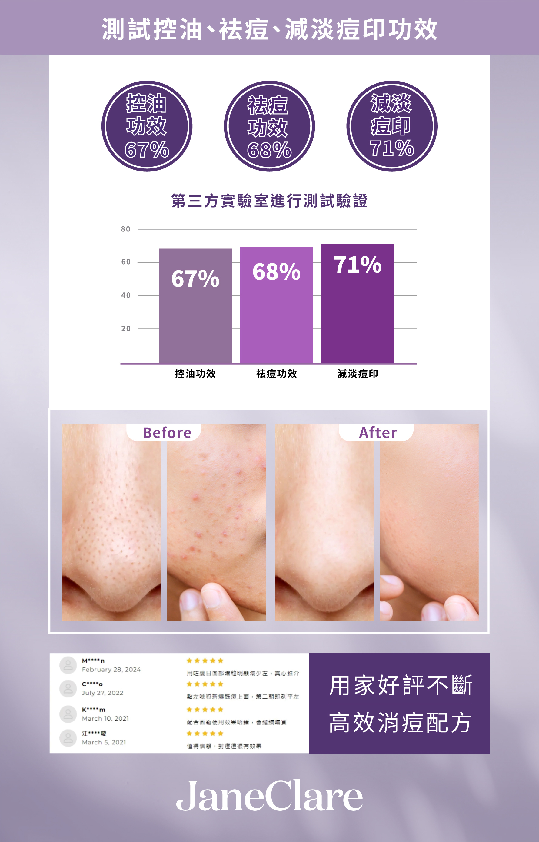 ·配合光果甘草,控油同時為肌膚補充水分,有助淡化痘印。